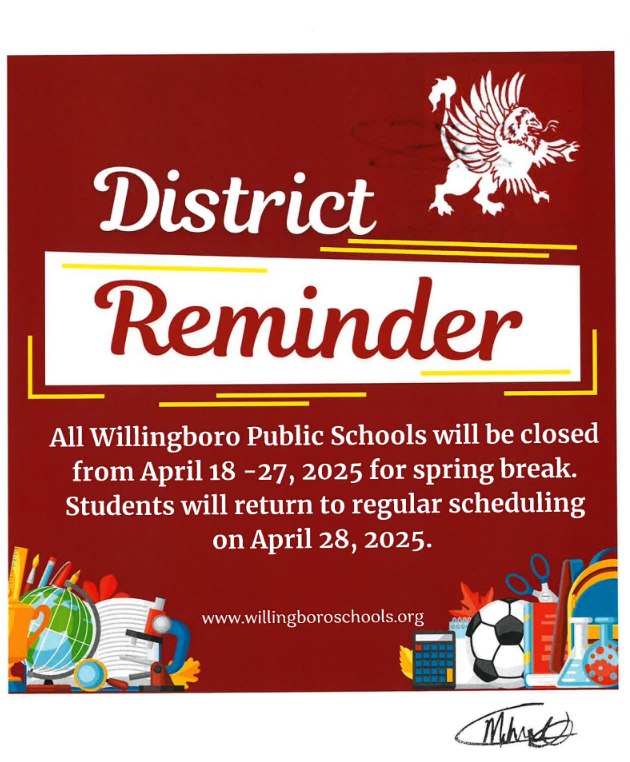 Attn Chimera Community: All Willingboro Public Schools will be closed from November 3-7, 2025, for Fall Break, and on November 10, 2025, in observance of Veterans Day. Studen...