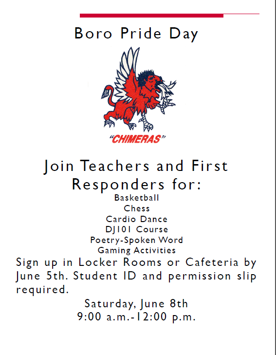Sign up in Locker Rooms or Cafeteria by June 5th. Student ID and permission